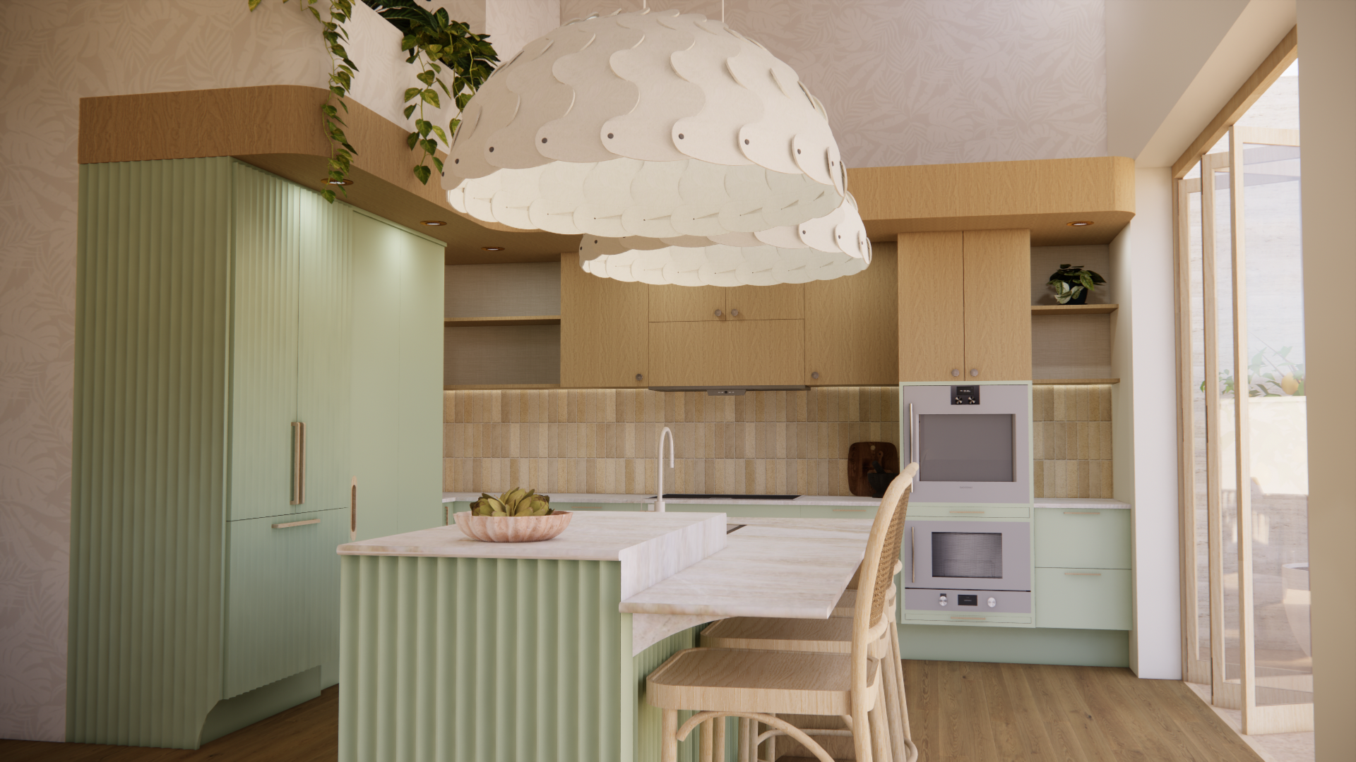 Biophilic Design - Considers natural elements and materials, natural light, ventilation and live plants.